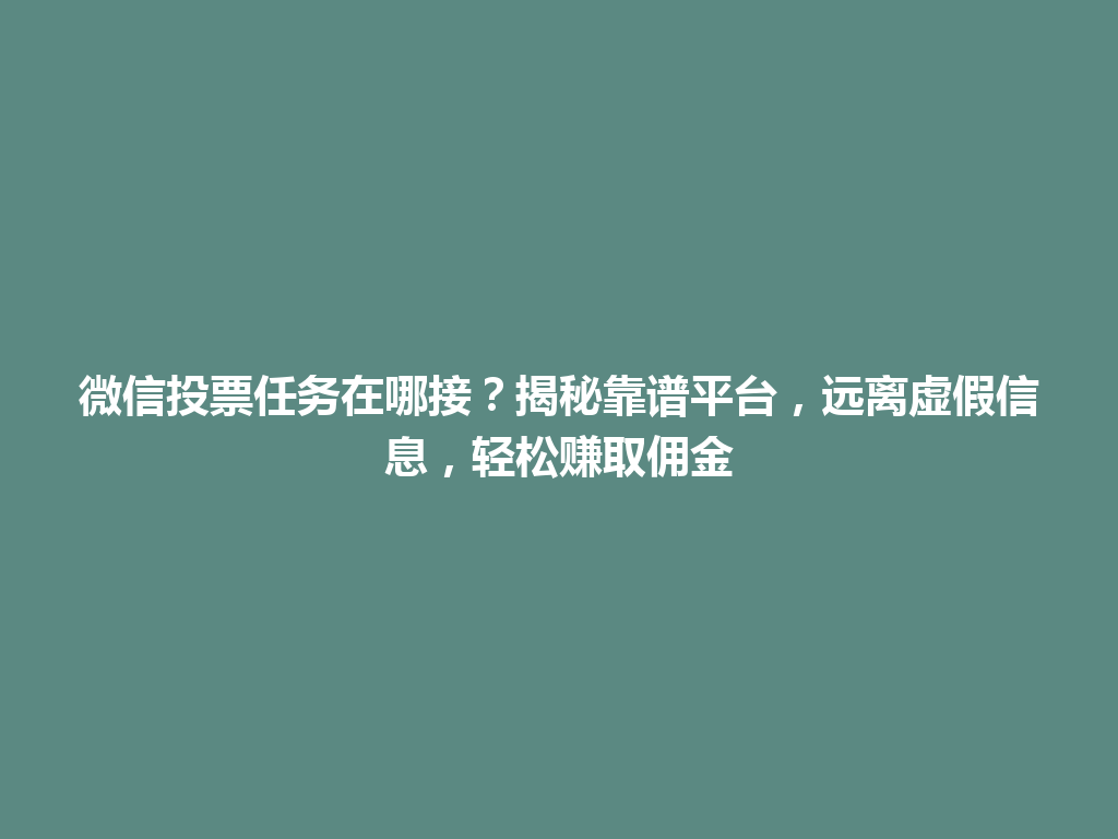 豆包网 微信 洱源县微信投票任务在哪接?揭秘靠谱平台,远离虚假信息,轻松赚取佣金